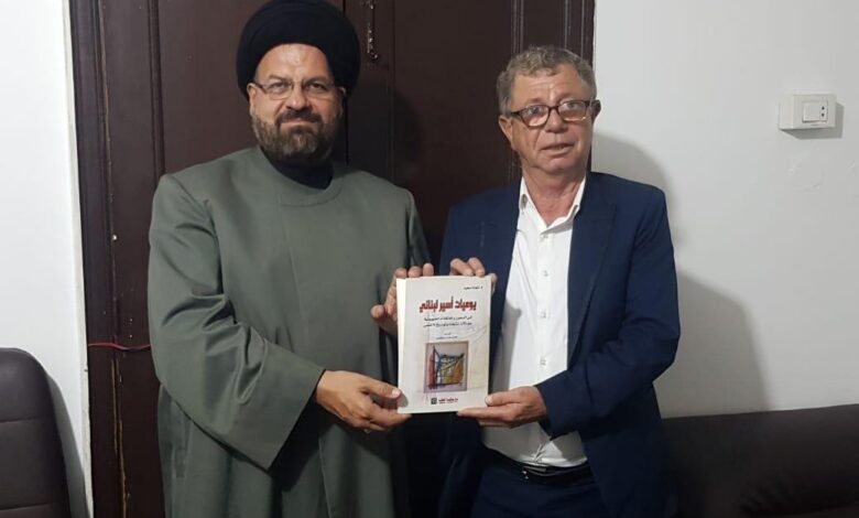 استقبل سماحة القاضي السيد محسن السيد احمد شوقي الامين في مكتبه بمحكمة صور الشرعية الجعفرية قبل ظهر اليوم الكاتب الدكتور عماد سعيد رئيس جمعية هلا صور الثقافية الاجتماعية وتسلم منه كتابه الجديد يوميات اسير لبناني في المعتقلات الصهيونية وشكره على الاهداء متمنيا له التوفيق والنجاح كما وجه سعيد دعوة رسمية لسماحة السيد محسن الامين كي، يشارك في حضور افتتاح وفعاليات وانشطة معرض الكتاب العربي التاسع الذي ستقيمه هلا صور في أكتوبر القادم في مجمع باسل الاسد الثقافي في صور برعاية رسمية وحضور عربي واسع وشامل ٠والذي يقام بعنوان القدس عاصمة أبدية لفلسطين ٠ وقد وعد القاضي السيد محسن الامين بتلبية الدعوة مشيدا بدور هلا صور على الصعيد الثقافي الوطني والاعلامي شاكرا د٠ عماد سعيد على كتابه التاريخي الذي يوثق لمرحلة صعبة وقاسية في تاريخ لبنان الحديث