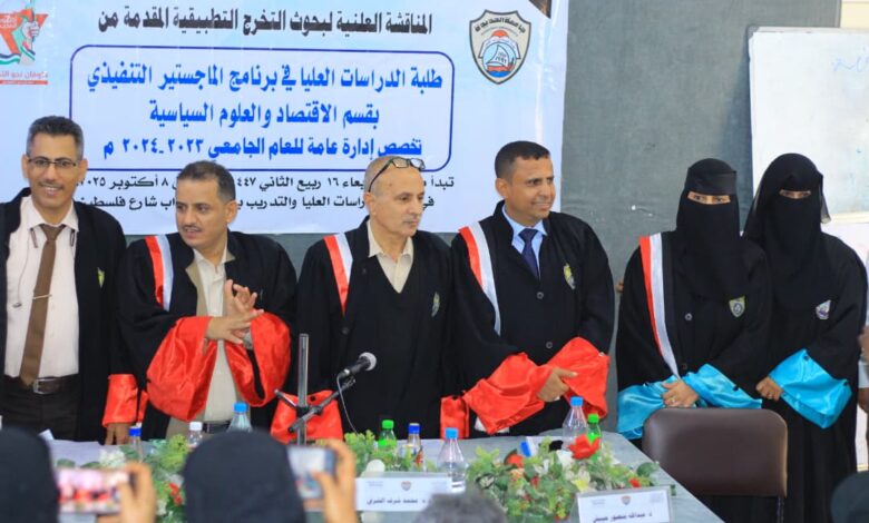 حصلت الباحثة / إقبال محمد عبدالله أبوعلي على درجة الماجستير من قسم الإقتصاد والعلوم السياسية بجامعة الحديدة عن رسالتها الموسومة ” دور التعليم الجامعي في اليمن ومدى تلبية إحتياجات التنمية ” ..
