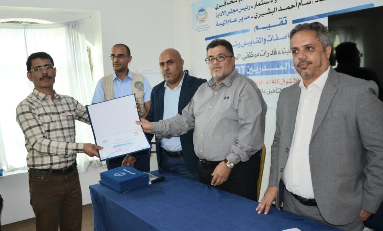 اختتم اليوم بصنعاء البرنامج التدريبي حول إعداد وتدريب المدربين نظمه مركز التدريب بالهيئة اليمنية للمواصفات والمقاييس وضبط الجودة.