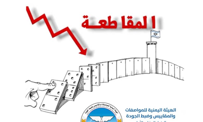 أعدت الهيئة اليمنية للمواصفات والمقاييس وضبط الجودة مصفوفة تنفيذية لقرار وزارة الصناعة والتجارة لحظر ومقاطعة منتجات الشركات التي تدعم الكيان الصهيوني.