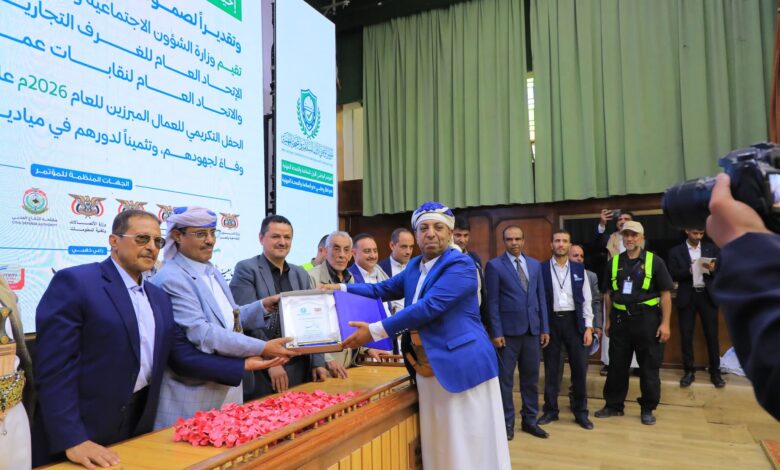 واختتم الحفل بتوزيع شهادات التقدير بحضور الفريق سلطان السامعي عضو المجلس السياسي الأعلى وقيادات وزارة الشؤون الاجتماعية والعمل والنقابات، في مشهد يجسد تلاحم القطاع الخاص مع قضايا العمال والوطن.