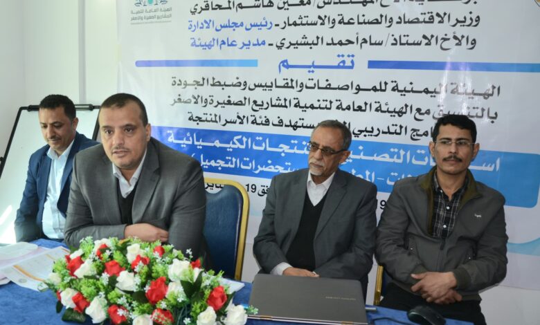 وفي الافتتاح أشار المدير التنفيذي للهيئة اليمنية للمواصفات والمقاييس وضبط الجودة سام أحمد البشيري إلى أهمية البرنامج لتعريف المشاركين وبناء قدراتهم في مجال تصنيع المنتجات الكيميائية وتعريفهم بمهارات طرق التحضير والتركيب وحساب نسب تصنيع المنظفات والمطهرات والمتطلبات الأساسية لتجهيز معامل إنتاج المنظفات وكذا المكونات المختلفة لمستحضرات التجميل .
