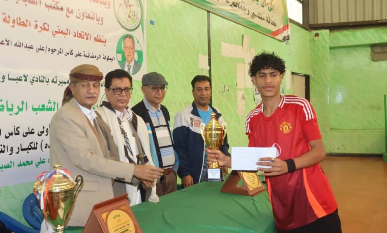 في أجواءٍ رمضانية طيبة، تم اليوم تكريم نجوم بطولة المرحوم علي الأعرج للعبة كرة الطاولة، والتي نُظِّمها فرع كرة الطاولة في نادي شعب إب، وتكريم نجوم بطولة محمد الصباحي للعبة كرة الطاولة والتي نظماهما فرع كرة الطاولة بمبادرة من نادي شعب إب احتفاءً و استذكارًا لذكرى المخلصين والأوفياء لنادي الشعب وللرياضة اليمنية. وجاءت مبادرتي دعم البطولتين من كلآ من الأستاذ أحمد العديني، نائب رئيس مجلس الشرف الأعلى لنادي الشعب، المعروف بمواقفه الداعمة للنادي ولكل من ينتمي إليه، وبعشقه ودعمه المستمر للرياضة. ولاعب شعب إب السابق رشيد النزيلي الذي لم ينسى ناديه ولا رموزه.