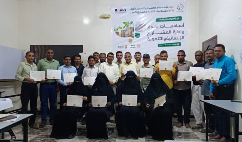 مؤسسة “نماء” تختتم برنامجاً تدريبياً في مجال إعداد وإدارة المشاريع الإنسانية والتنموية لفرع الزيدية بالحديدة